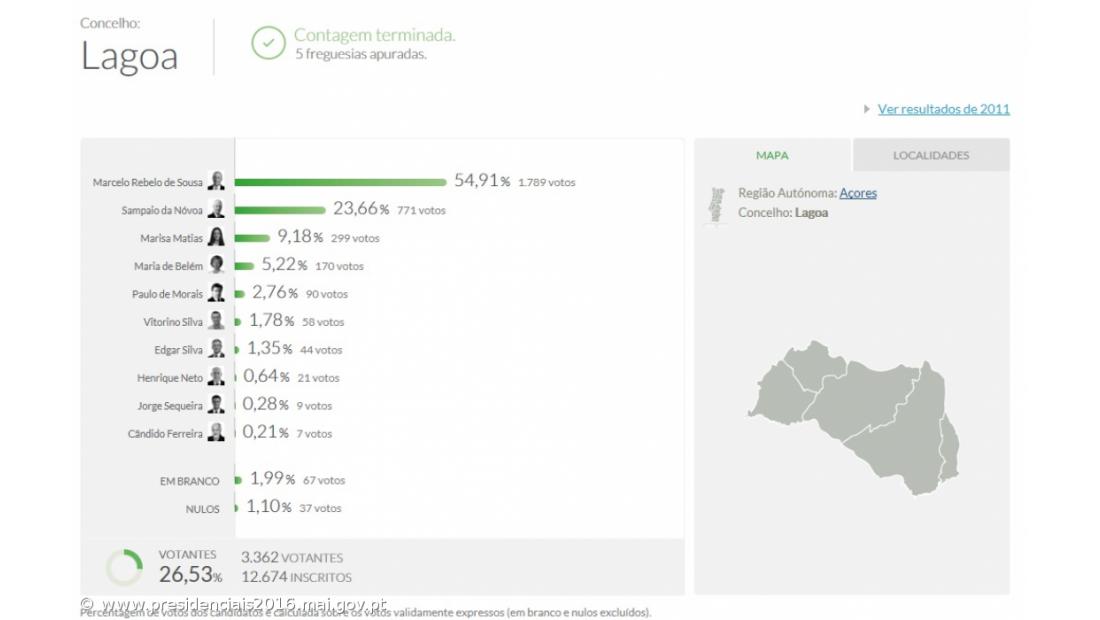 É o seguinte o quadro dos resultados no concelho de Lagoa de acordo com as votações divulgados pela secretaria-geral do Ministério da Administração Interna – Administração Eleitoral: