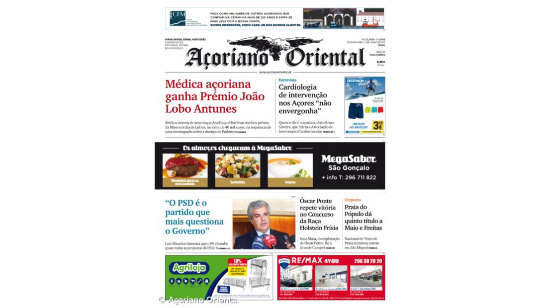 "Médica açoriana ganha Prémio João Lobo Antunes" é a manchete do Açoriano Oriental