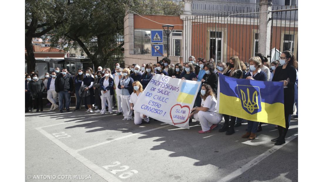 “Espero que esta guerra acabe brevemente com a vitória, que não é só ucraniana, mas do mundo inteiro, contra um diabo”, salientou o médico, acompanhado de outros profissionais de saúde também ucranianos.