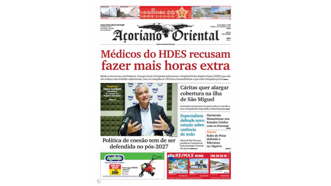 "Médicos do HDES recusam fazer mais horas extra" é a manchete da edição deste domingo do Açoriano Oriental.