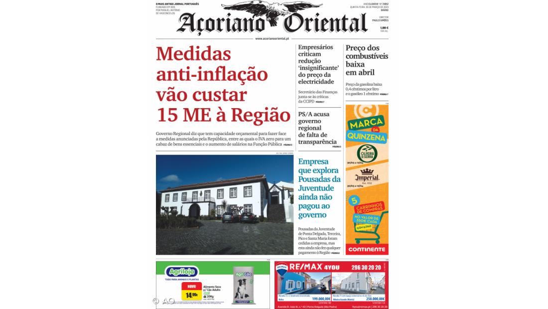 Açoriano Oriental noticia que as medidas anunciadas pelo Governo da República, como IVA zero para cabaz de bens essenciais e subida de salários na função pública, vão ter custo de 15 milhões de euros e não é necessário orçamento retificativo.