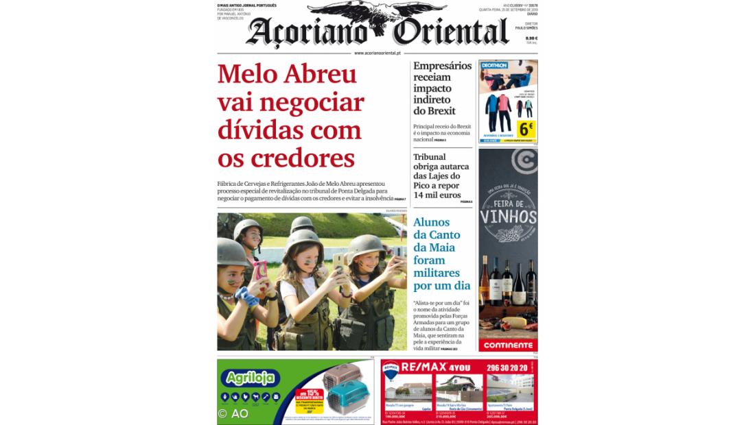 "Alunos da Canto da Maia foram militares por um dia", é o título do destaque fotográfico da capa do Açoriano Oriental.