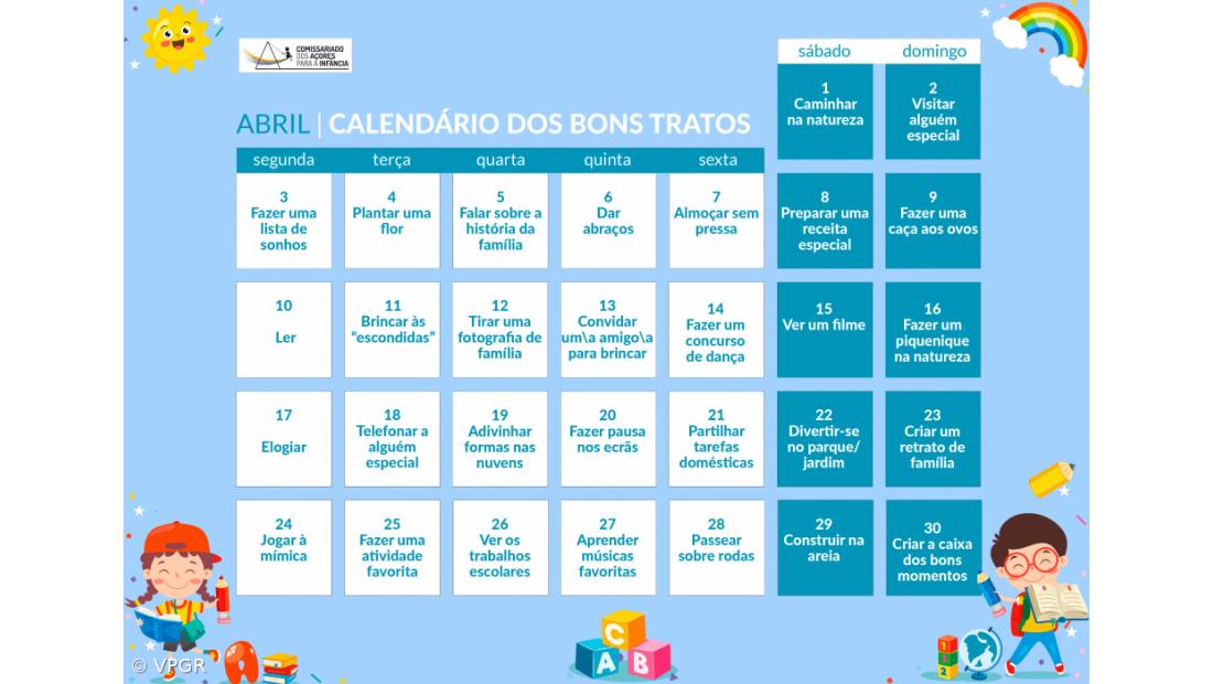Neste calendário - segundo nota difundida pelo Portal do Governo Regional - são propostas várias atividades visando a informação e sensibilização sobre os direitos das crianças, as suas necessidades e interesses.