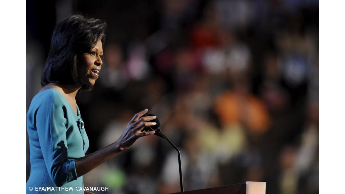Michelle Obama falou aos delegados como mulher, como mãe e como filha e disse que ela e Barack foram criados com valores comuns, por pais da classe trabalhadora que queriam para os filhos as oportunidades que não tiveram.