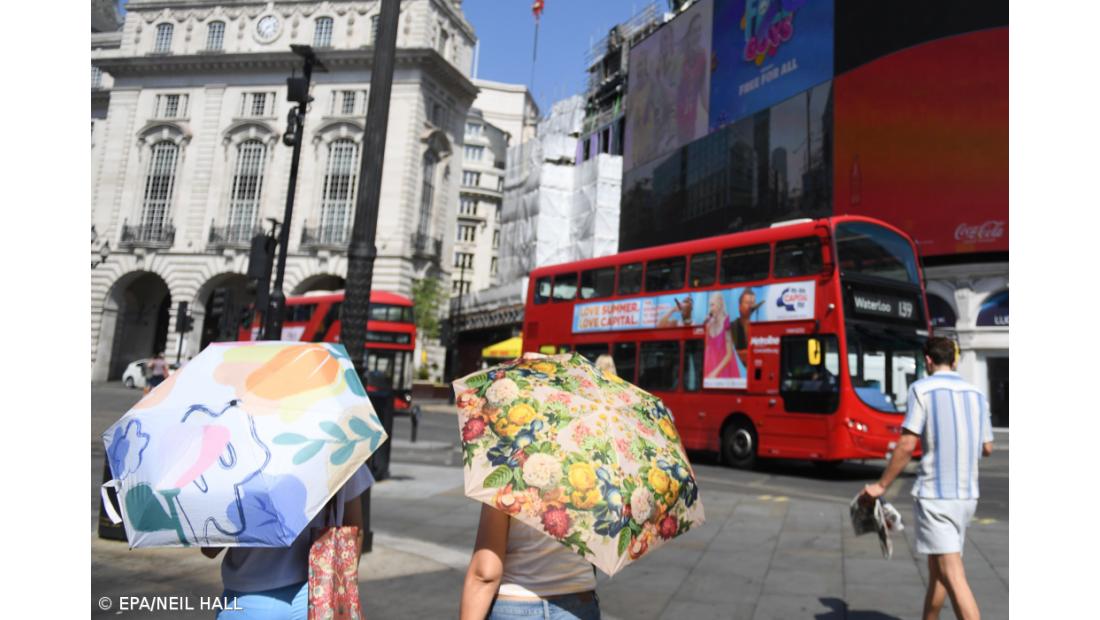 Uma grande parte de Inglaterra, de Londres (no sul) a Manchester e Leeds (no norte) está sob o primeiro aviso de “calor extremo” no país, o que significa que há perigo de morte mesmo para pessoas saudáveis.