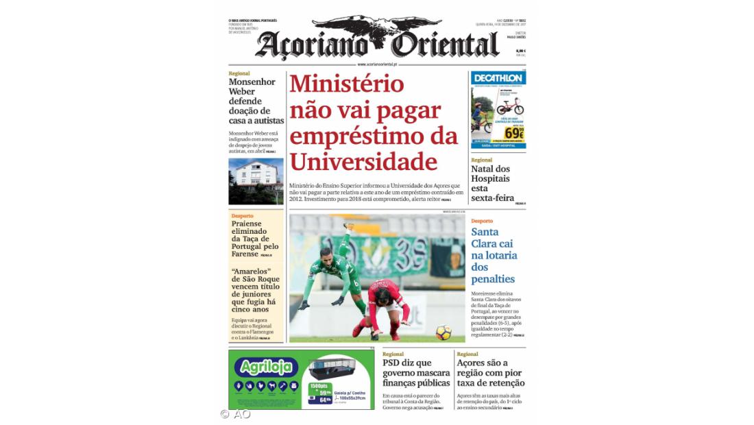 "Monsenhor Weber defende doação de casa a autistas" e "Açores são a região com pior taxa de retenção" no ensino são outros destaques do jornal.