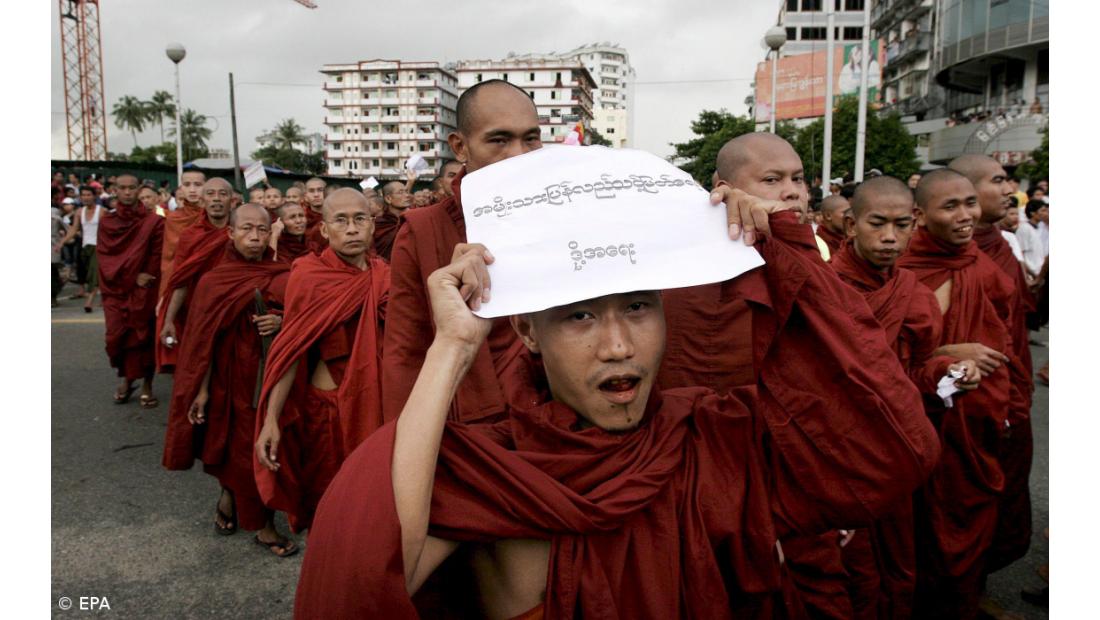 Os monges budistas têm uma longa história de participação nos combates políticos da Birmânia, desde as lutas contra o domínio colonial do país até ao levantamento pró-democracia de 1988, que a Junta Militar esmagou matando mais de três mil pessoas.