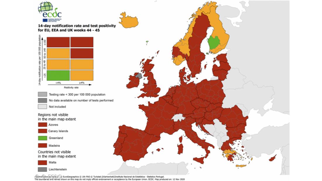 Os Açores entraram na lista vermelha do Centro Europeu de Controlo de Doenças (ECDC) para a transmissão do novo coronavírus.
