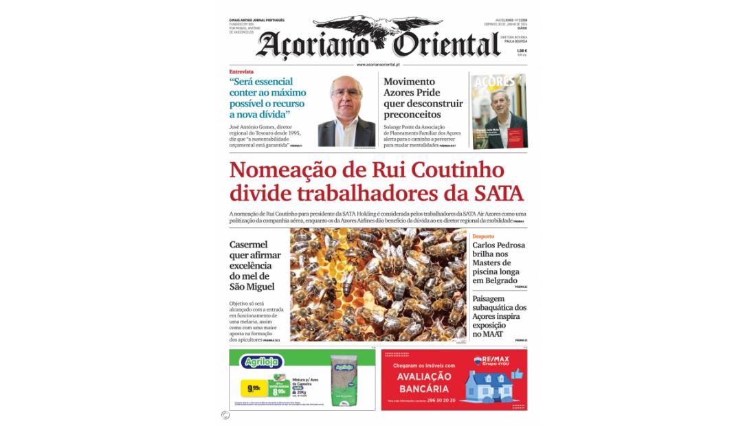 Ainda nesta edição: "Casermel quer afirmar excelência do mel de São Miguel", “Será essencial conter ao máximo possível o recurso a nova dívida” , "Movimento Azores Pride