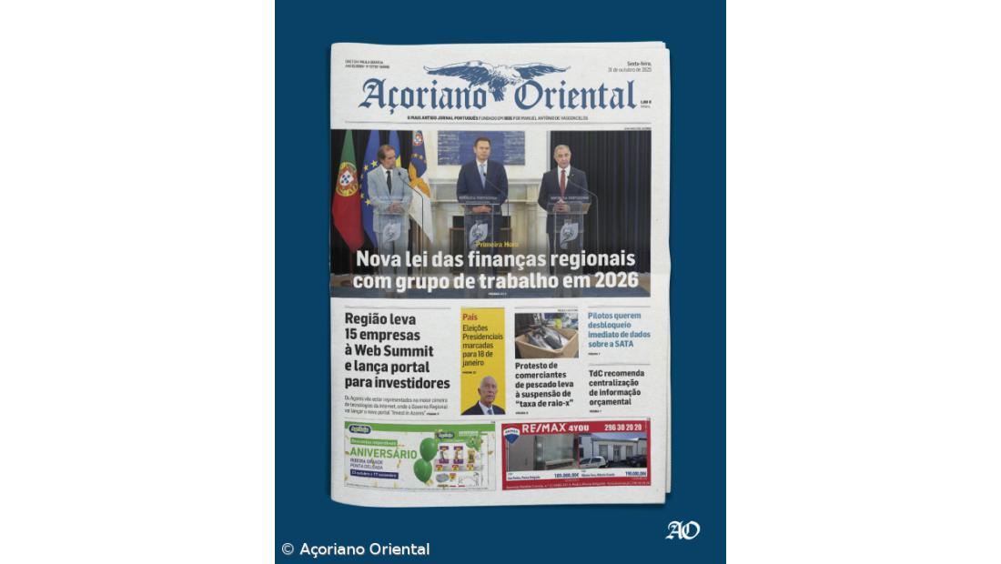 "Região leva 15 empresas à Web Summit e lança portal para investidores" é outro dos títulos na capa do Açoriano Oriental, que também adianta que "Eleições Presidenciais marcadas para 18 de janeiro".