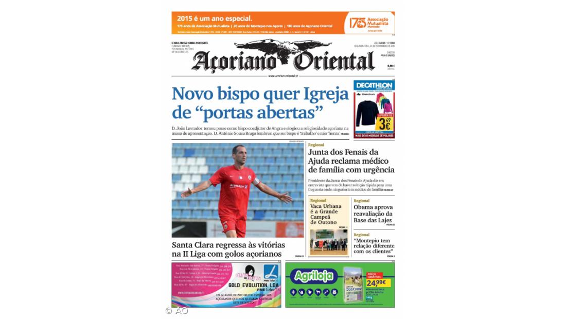 "Junta dos Fenais da Ajuda reclama médico de família com urgência" e "Vaca Urbana é a Grande Campeã de Outono" são outros destaques do jornal.