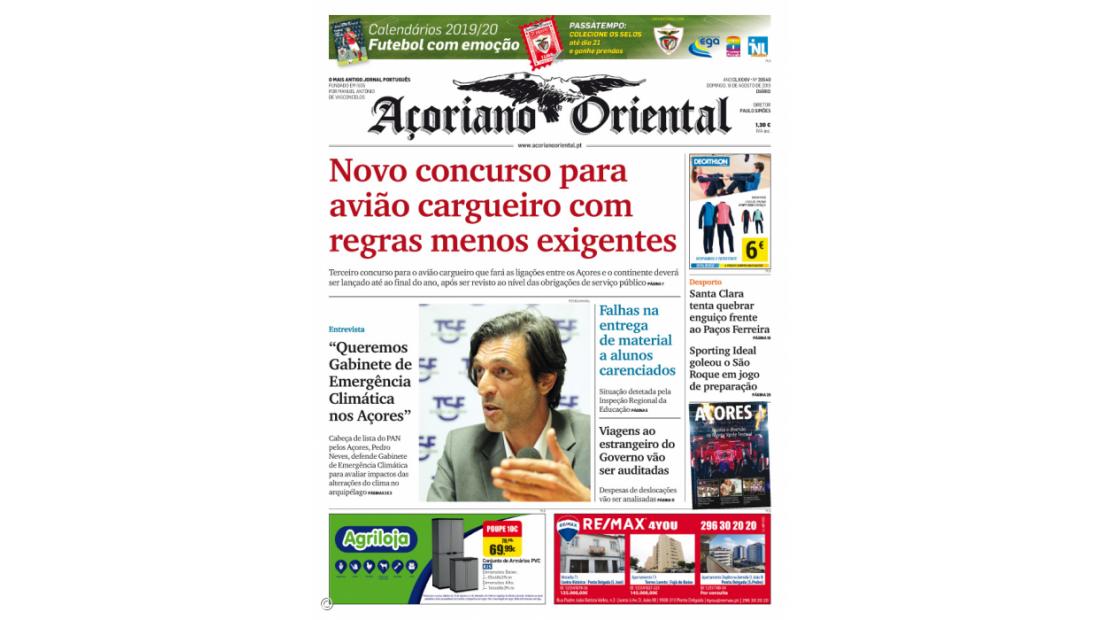 "Novo concurso para avião cargueiro com regras menos exigentes" é a manchete do Açoriano Oriental deste domingo.