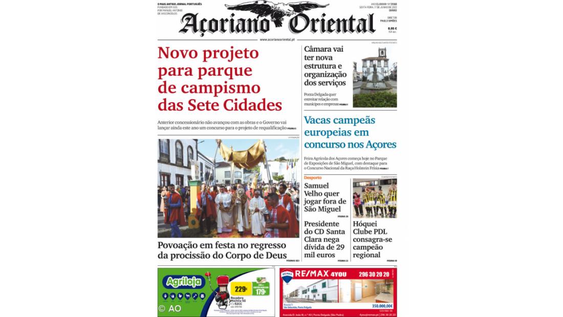 "Câmara de Ponta Delgada vai ter nova estrutura e organização dos serviços" e "Vacas campeãs europeias em concurso nos Açores" são outros destaques do jornal.