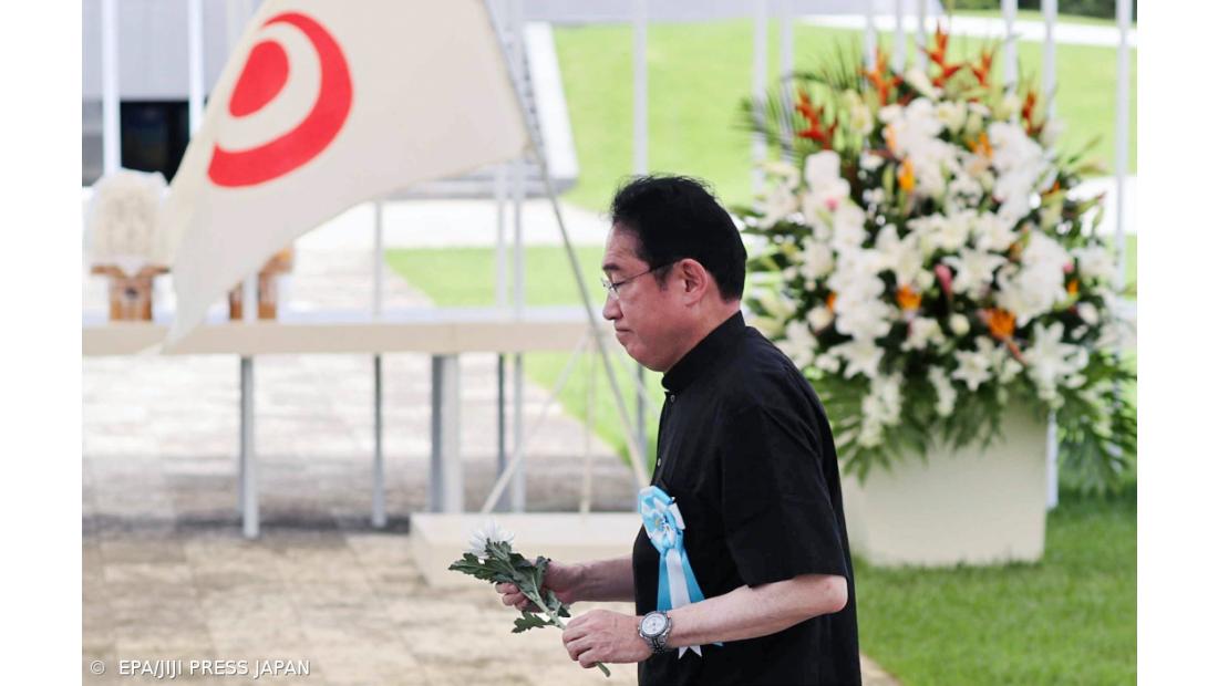 Tamaki e o primeiro-ministro japonês, Fumio Kishida, participaram na cerimónia de aniversário, realizada em Itoman, cidade situada no sul da ilha principal de Okinawa e palco do fim da batalha.