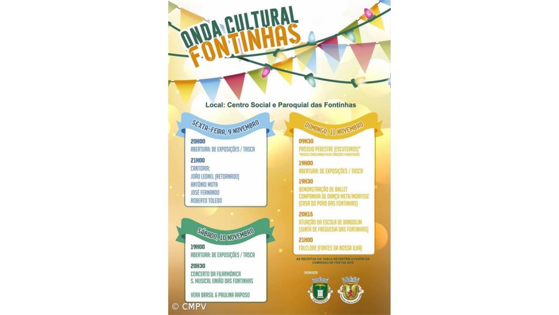 A freguesia das Fontinhas acolhe, entre os dias 9 e 11 de novembro, a Onda Cultural da freguesia, um evento promovido pela Câmara Municipal da Praia da Vitória, Junta de Freguesia das Fontinhas e Centro Social e Paroquial daquela localidade.