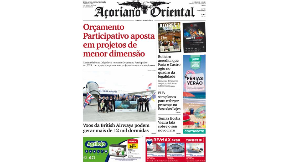 O destaque fotográfico do jornal vai para o voo inaugural da British Airways nos Açores, cuja operação pode gerar mais de 12 mil dormidas durante os meses de julho e agosto.