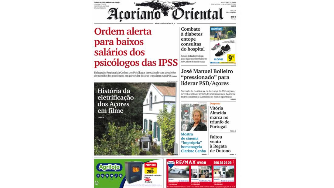 "Ordem alerta para baixos salários dos psicólogos das IPSS" é a manchete do Açoriano Oriental desta quarta-feira.