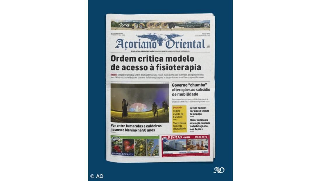 As dificuldades de acesso à Fisioterapia nos Açores estão em destaque no Açoriano Oriental de terça-feira, 23 de dezembro de 2025.