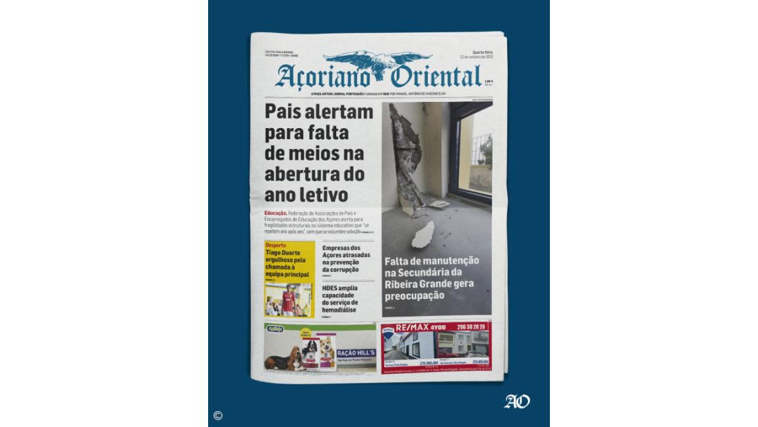 Ainda nesta edição: "Empresas dos Açores atrasadas na prevenção da corrupção", "HDES amplia capacidade do serviço de hemodiálise", "Falta de manutenção na Secundária da Ribeira Grande gera preocupação".