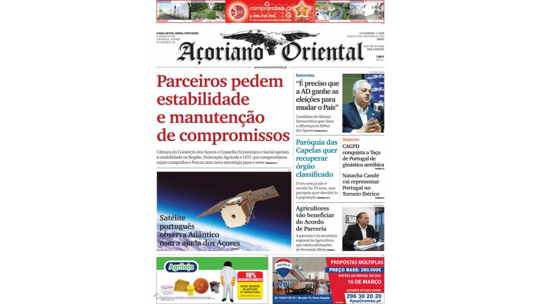"Parceiros pedem estabilidade e manutenção de compromissos" é a manchete do Açoriano Oriental