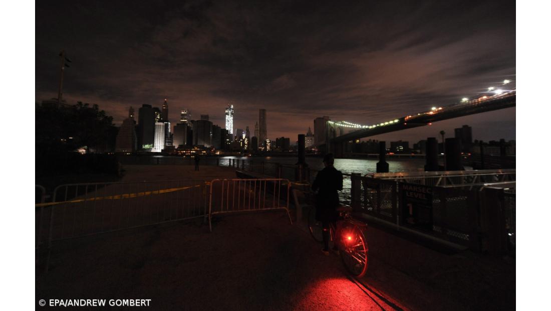 Uma parte da cidade está atualmente sem energia elétrica devido à passagem do furacão Sandy.