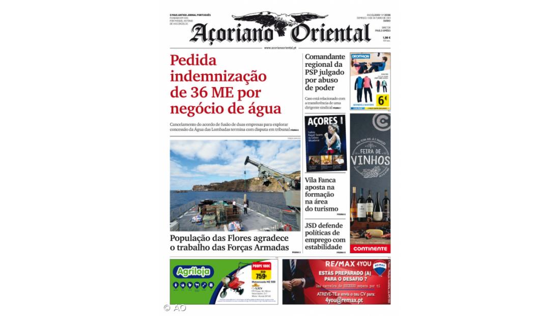 "População das Flores agradece o trabalho das Forças Armadas", é o título do destaque fotográfico da capa do Açoriano Oriental.