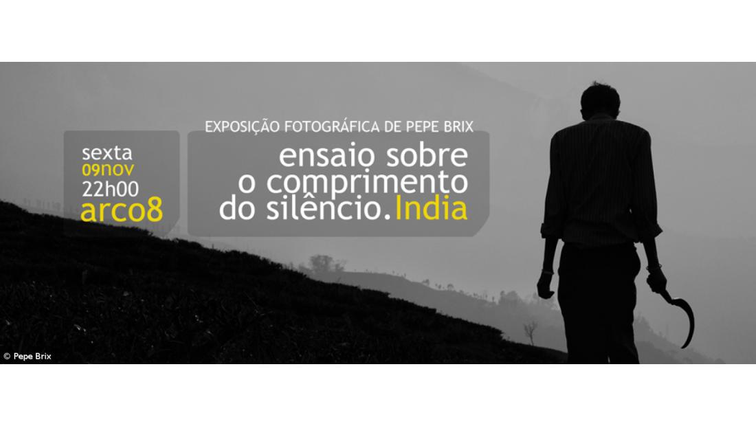 No próximo dia 9 de novembro, pelas 22h00, na Galeria Arco 8 terá lugar a abertura da exposição fotográfica de Pepe Brix, intitulada por "Ensaio sobre o comprimento do Silêncio. Índia".