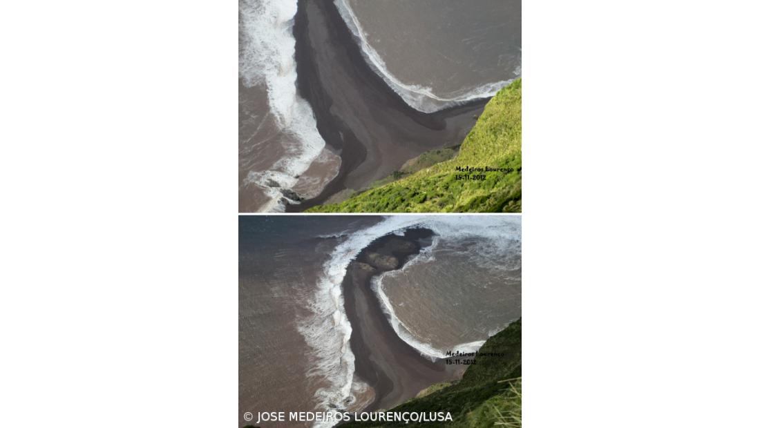 “Mas a evolução da abrasão da enorme massa geológica que se desprendeu da encosta noroeste da ilha do Corvo formou agora um istmo entre os ilhéus então formados e a própria ilha”, explicou Frederico Cardigos.