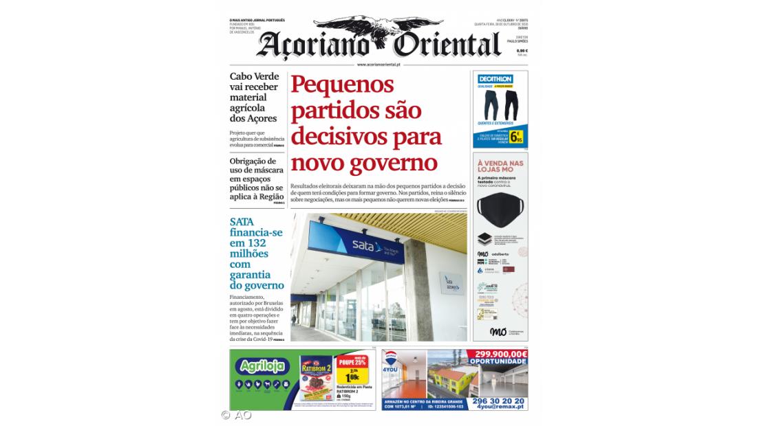 O Açoriano Oriental destaca na sua edição impressa o peso dos pequenos partidos na decisão de quem terá condições para formar governo