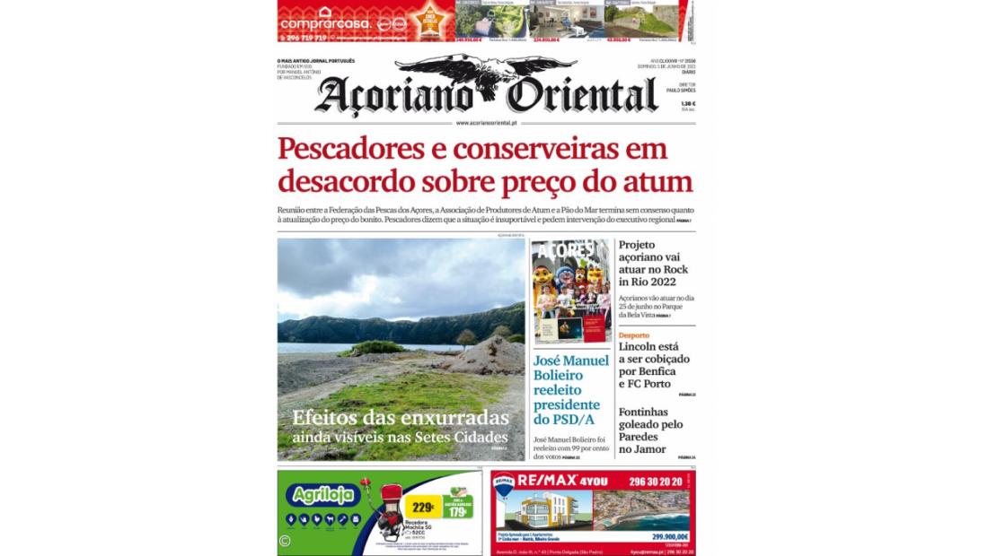 "Pescadores e conserveiras em desacordo sobre preço do atum" é a manchete da edição deste domingo do Açoriano Oriental.