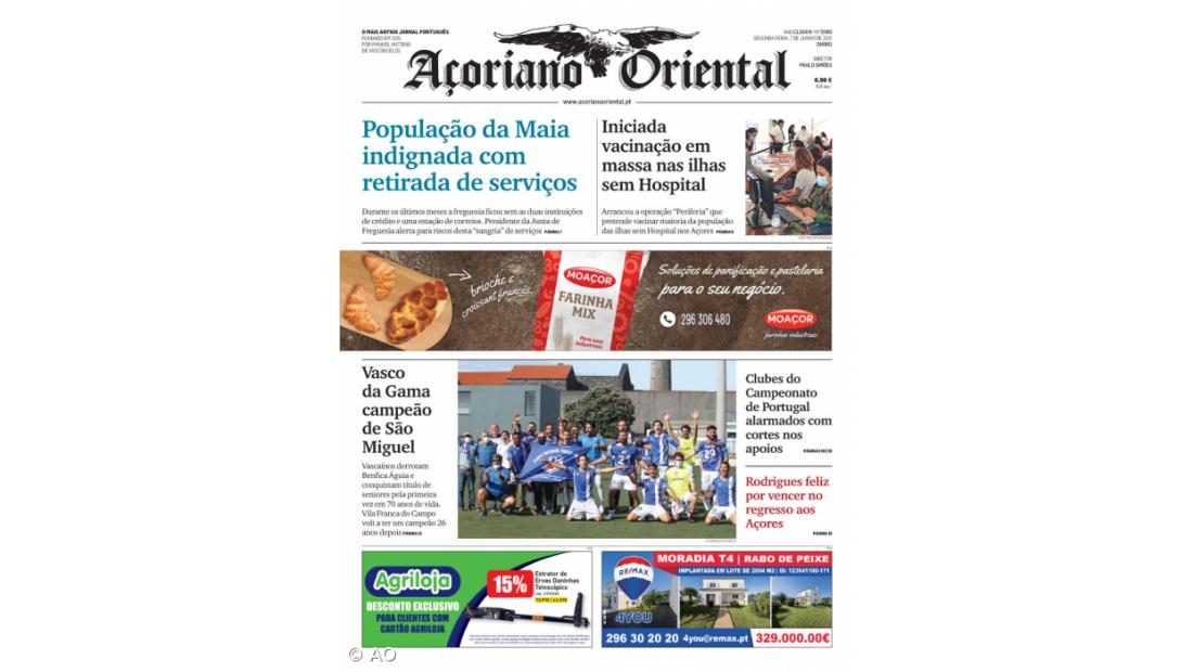 "Vasco da Gama campeão de São Miguel", é o título do destaque fotográfico da capa do Açoriano Oriental.