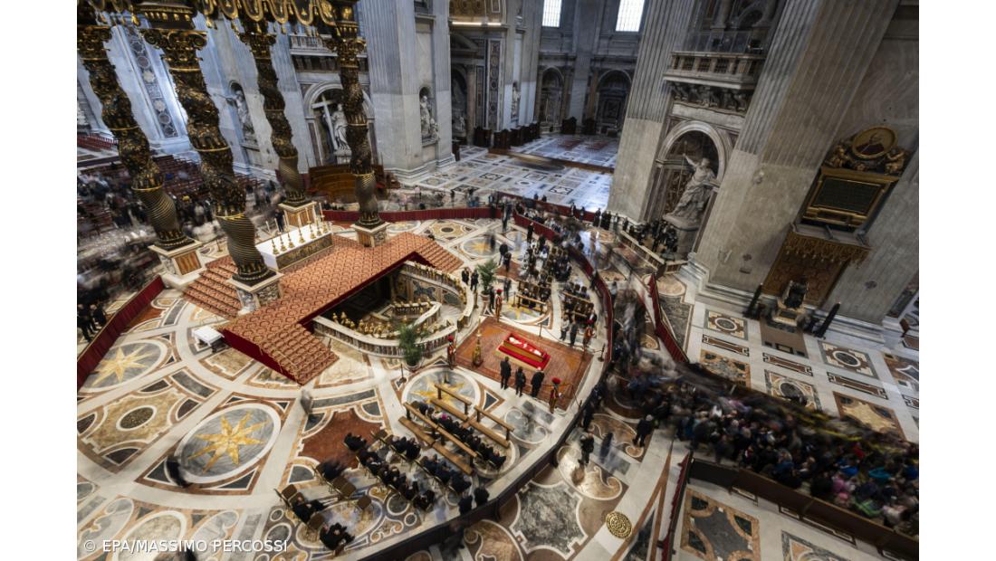 O corpo de Francisco foi exposto para ser velado na quarta-feira e as exéquias irão terminar com despedidas solenes no sábado, com a transferência para a Basílica de Santa Maria Maior, onde será realizada a cerimónia de sepultamento, como havia sido pedido pelo Papa, com uma única inscrição: “Franciscus”.