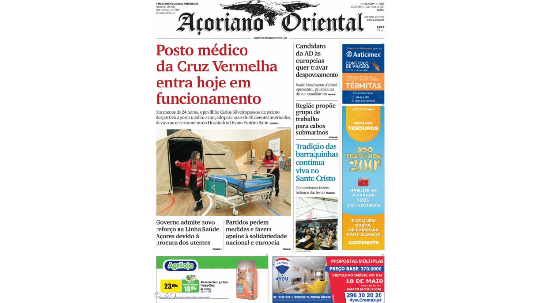 A situação dos cuidados de saúde na ilha de São Miguel após o encerramento do Hospital do Divino Espírito Santo continua a marcar a atualidade no Açoriano Oriental de sexta-feira, 10 de maio de 2024.
