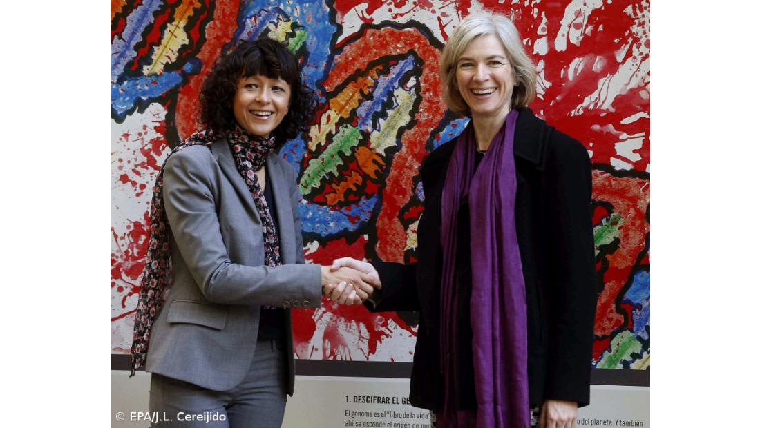 A francesa Emmanuelle Charpentier, da unidade de Ciência Patogénica do Instituto Max Planck, na Alemanha, e a norte-americana Jennifer Doudna, do Instituto de Medicina Howard Hughes, da Universidade da Califórnia, em Berkeley, são responsáveis pela criação da ferramenta química CRISPR-Cas9, que permite fazer cortes em partes seletas das sequências de DNA.