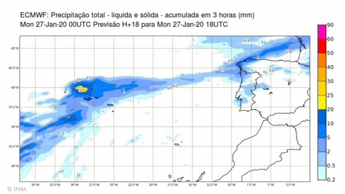 Uma depressão com um sistema frontal associado, irá provocar precipitação forte que poderá ser acompanhada de trovoada em especial nas ilhas dos grupos Central e Oriental nas próximas horas.