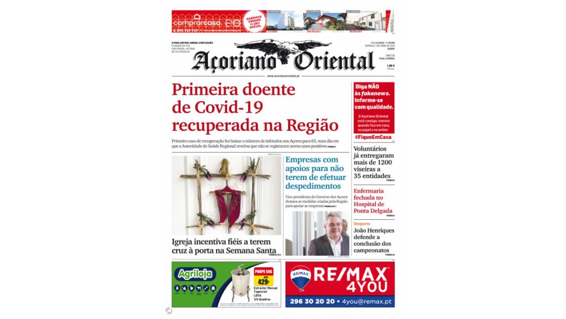 Ainda nesta edição: "Voluntários já entregaram mais de 1200 viseiras a 35 entidades", "Enfermaria fechada no Hospital de Ponta Delgada" e "João Henriques defende a conclusão dos campeonatos".