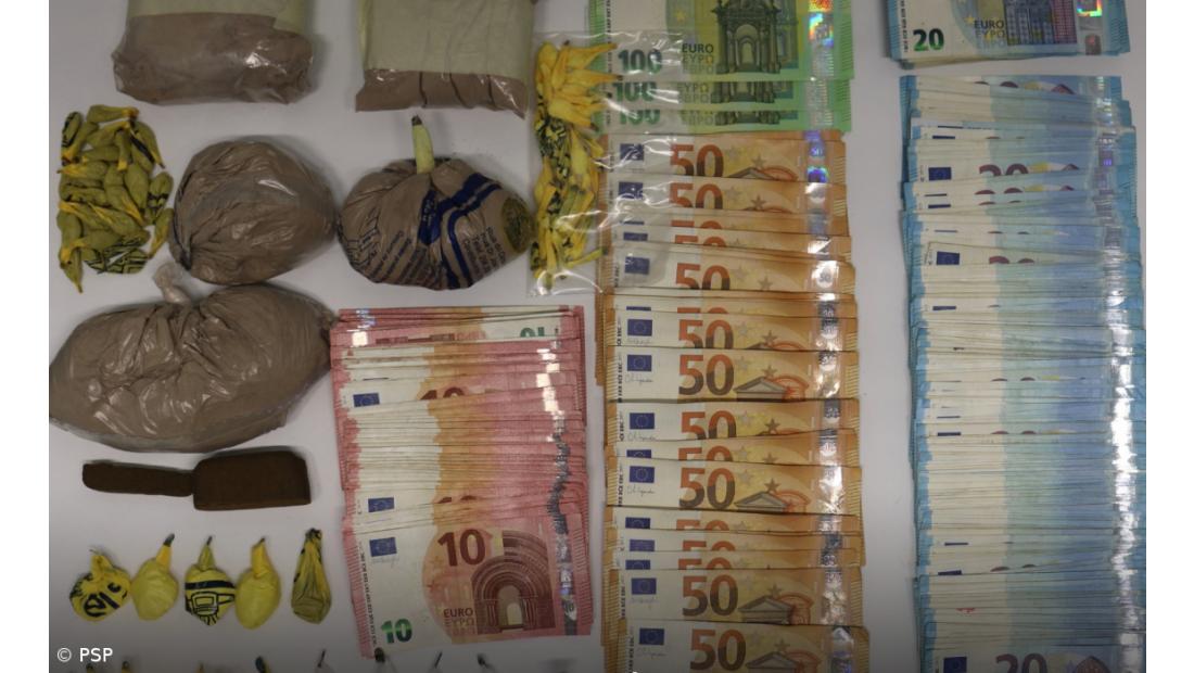 Em comunicado, a PSP adianta que "a detenção foi realizada no decurso de uma operação policial que teve como objetivo a obtenção da prova, tendo o arguido sido surpreendido na posse de 9.955 doses de heroína, de 841 doses de droga sintética, de 66 doses de haxixe e de 9.426 euros em dinheiro".