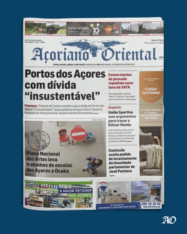 A manchete de hoje do Açoriano Oriental dá conta que o Tribunal de Contas considera que a dívida da Portos dos Açores "é insustentável".