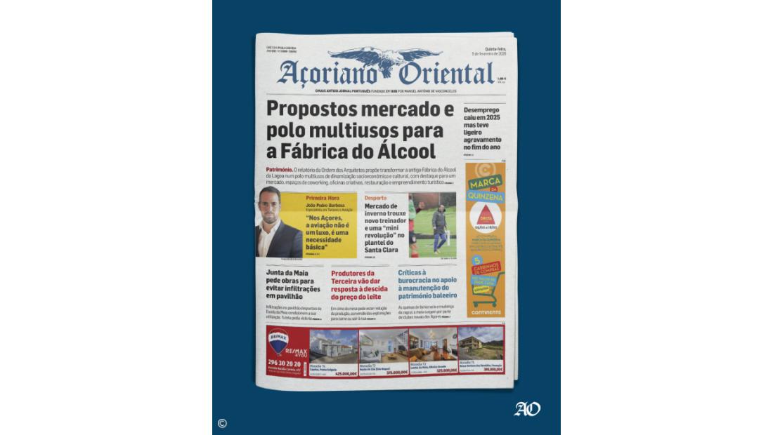Ainda nesta edição: “Nos Açores, a aviação não é um luxo, é uma necessidade básica”, "Junta da Maia pede obras para evitar infiltrações em pavilhão", "Produtores da Terceira vão dar resposta à descida do preço do leite", "Críticas à burocracia no apoio à manutenção do património baleeiro" e "Desemprego caiu em 2025 mas teve ligeiro agravamento no fim do ano".