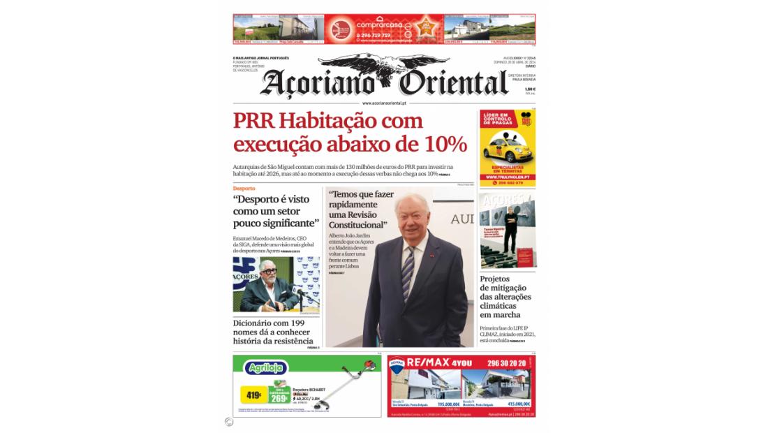 "PRR Habitação com execução abaixo de 10%" é a manchete da edição deste domingo do Açoriano Oriental.