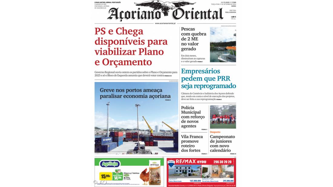 As posições dos vários partidos com assento parlamentar nos Açores sobre o que deve ser o Plano e Orçamento do Governo Regional para 2025 está em destaque no Açoriano Oriental de terça-feira, 17 de setembro de 2024.