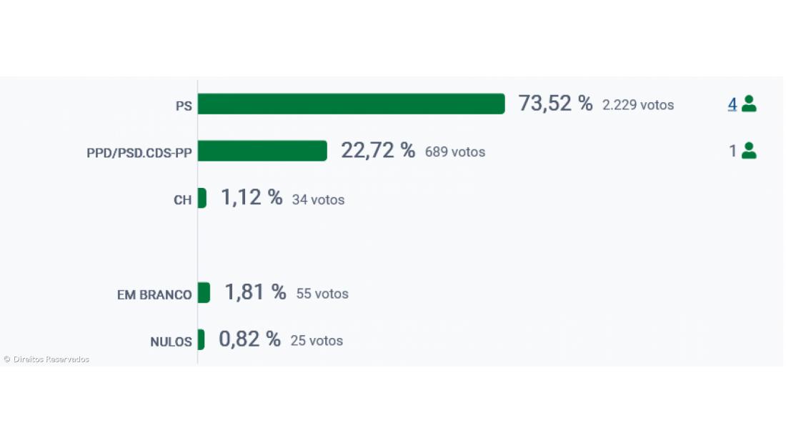 O PSD-CDS-PP obteve 22,72, seguido do Chega com 1,12%
