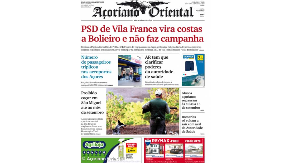 "PSD de Vila Franca vira costas a Bolieiro e não faz campanha" é a manchete do Açoriano Oriental