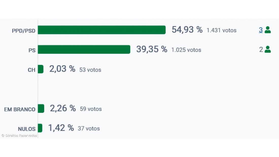 O PS obteve 39,35 %, seguido do Chega com 2,03&