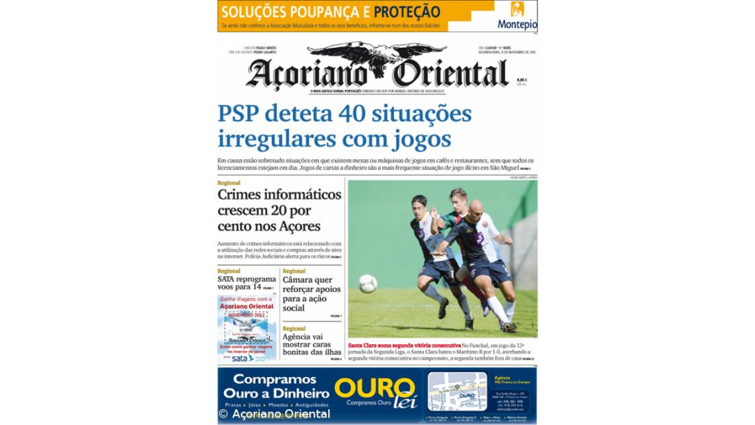 "PSP deteta 40 situações irregulares com jogos" é a manchete do Açoriano Oriental