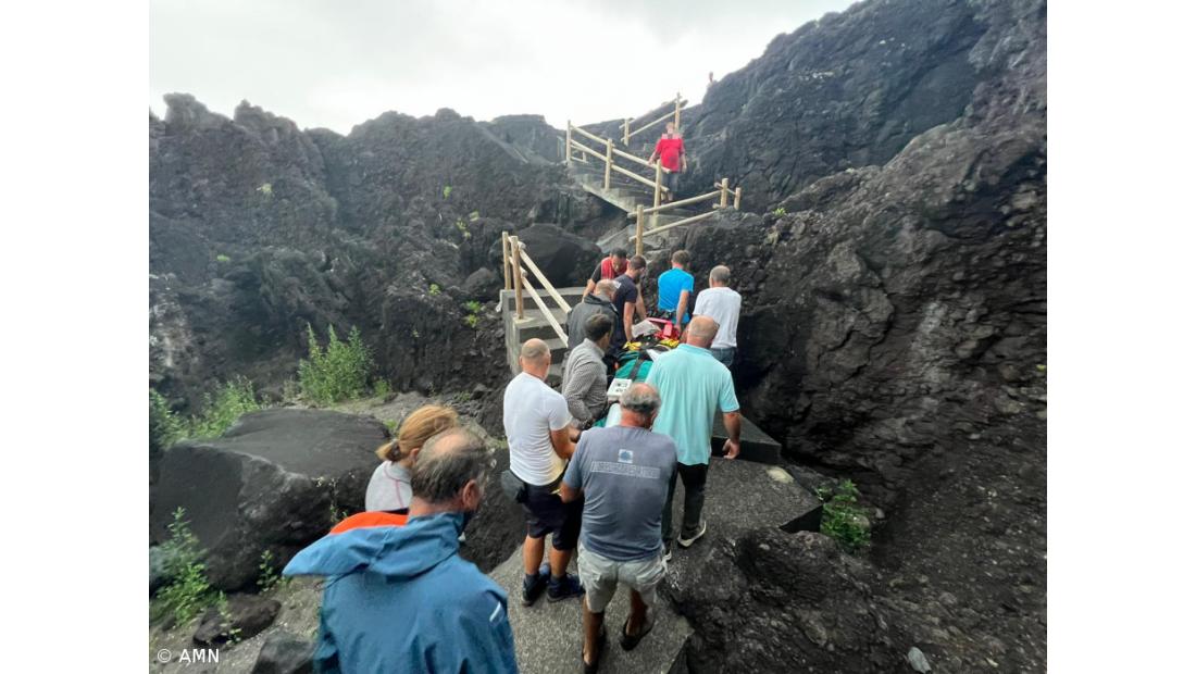 Quatro pessoas tiveram de ser auxiliadas na segunda-feira na Fajã do Ouvidor, em São Jorge, nos Açores, depois de alegadamente terem sido arrastadas por uma onda, o que provocou ferimentos graves num dos banhistas