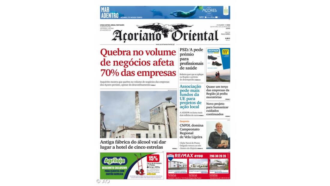 A reivindicação da ASDEPR de mais verbas do próximo quadro comunitário para projetos de desenvolvimento local, a proposta do PSD/A de que seja estendido à Região o "prémio" aos profissionais de saúde aprovado na Assembleia da República, o novo projeto para humanizar os cuidados continuados e os pedidos de moratórias por um terço das empresas são outros dos assuntos da edição de hoje, onde o Desporto dá conta que o Clube Naval de Ponta Delgada domina o Campeonato Regional de Vela Ligeira.
