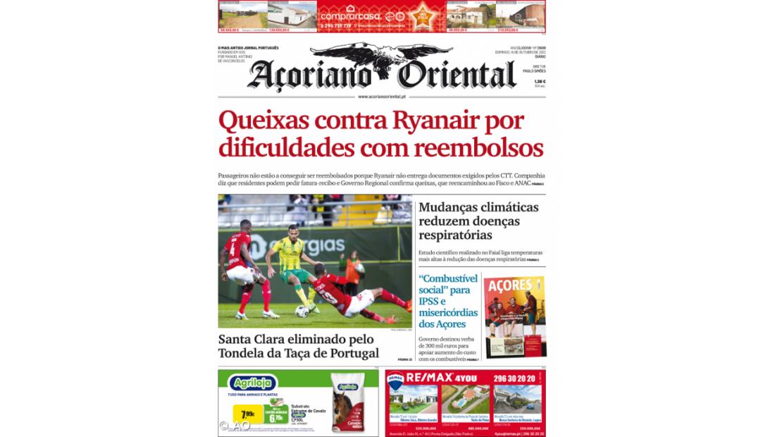 "Mudanças climáticas reduzem doenças respiratórias" e "'Combustível' social para IPSS e misericórdias dos Açores" são outros destaques do jornal.