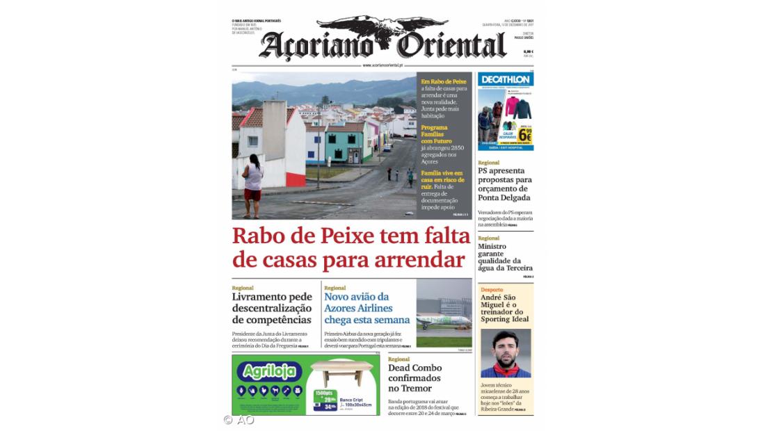 "Livramento pede descentralização de competências", "Novo avião da Azores Airlines chega esta semana" e "PS apresenta propostas para orçamento de Ponta Delgada" são outros destaques da edição desta quarta-feira.