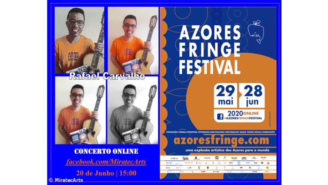 No próximo sábado, dia 20 de junho, pelas 15 horas, a partir da página do facebook da MiratecArts e do Azores Fringe Festival, pode assistir ao  recital de música de originais com Rafael Carvalho e a sua Viola da Terra.